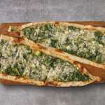 Mevsim sebzeleri, ıspanak, köz patlıcan ve kaşar peyniri