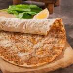 Çiğ köfte, lavaş ekmeği, marul, ve limon ile