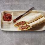 Lavaş, ORA Köfte, kibrit patates, marul, kırmızı biber, özel ORA sosu ve humus