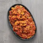 Domates ve özel Ora baharatları, Kıtır ekmek, pide, kaşar peyniri ile servis edilir.